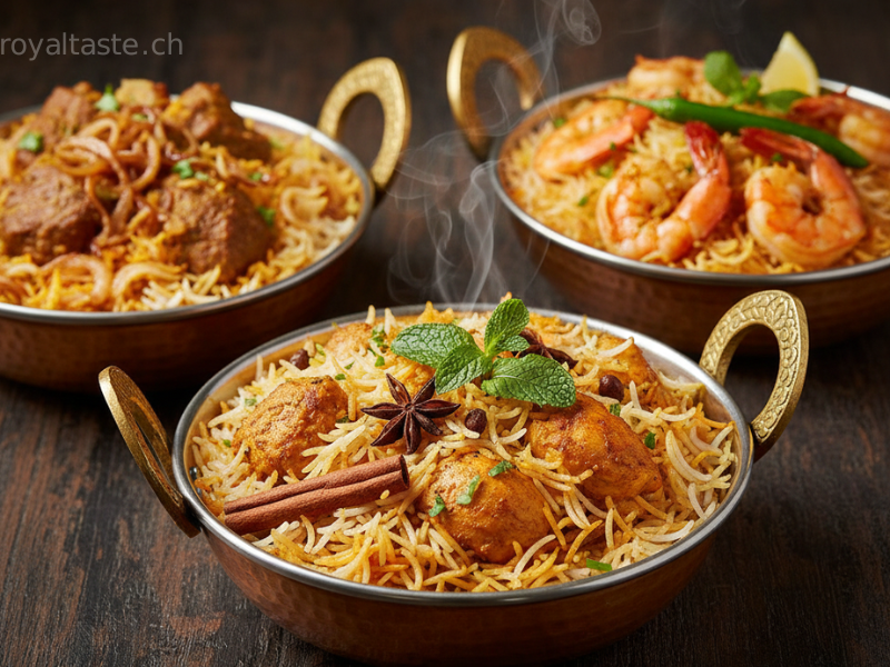 Our royal biriyani selection features fragrant basmati rice layered with tender meats, seafood, or fresh vegetables, slow-cooked to perfection with aromatic spices. Each dish is a complete and satisfying meal inspired by classic Indian royal kitchens.