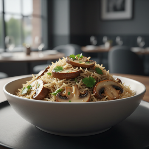 Rice cooked with fresh mushrooms. Light and aromatic.