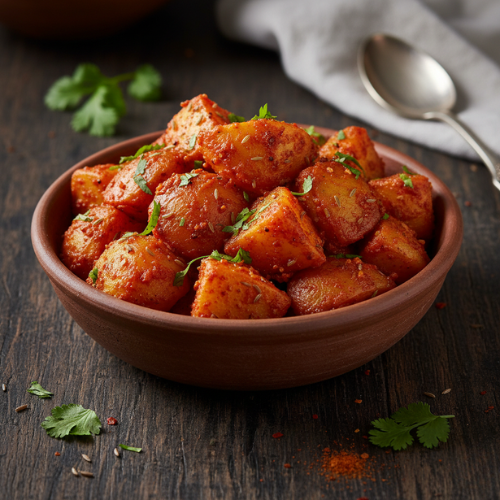 Spiced potatoes Bombay style. Bold and tangy (with rice)