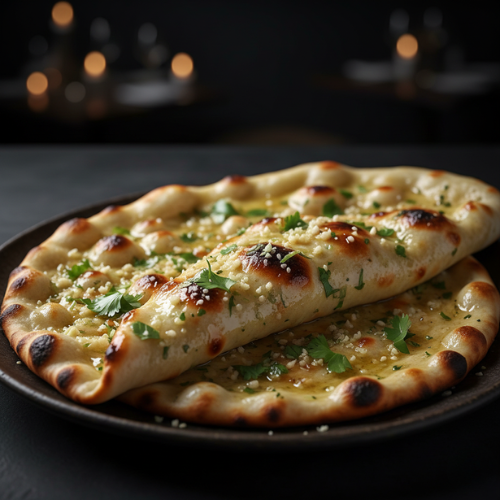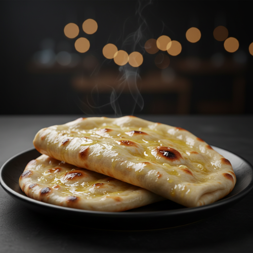 Naan topped with garlic and butter. Rich and aromatic.