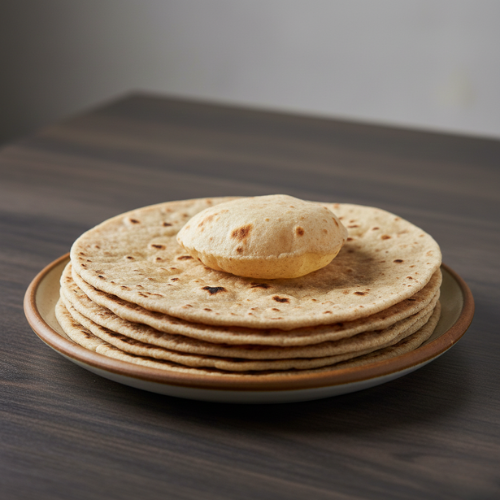 Thin whole wheat bread cooked on tawa. Simple and traditional.