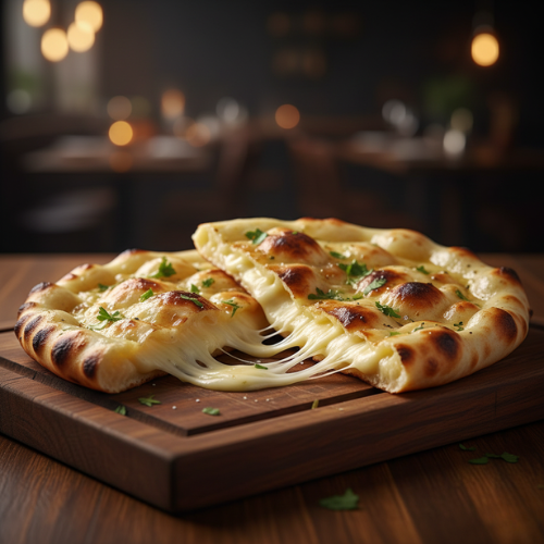 Naan filled with melted cheese. Indulgent and filling.