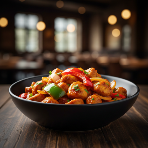 Boneless chicken pieces deep fried in spices. Crispy juicy and tasty.