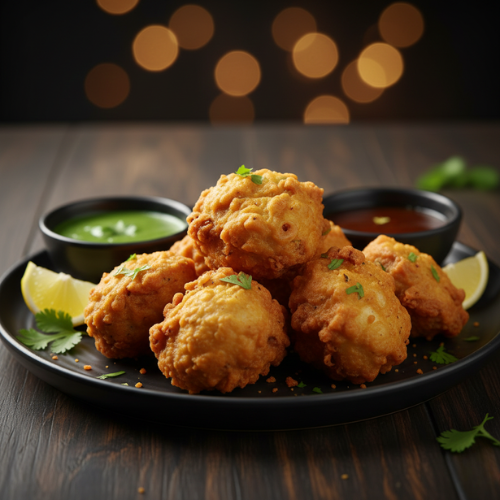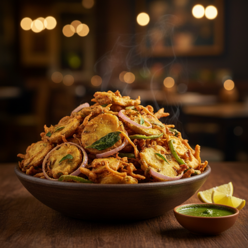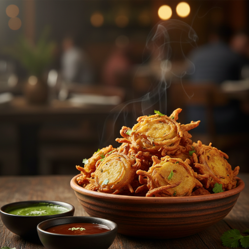 Thinly sliced onions mixed with gram flour and spices. Crispy golden and flavorful.