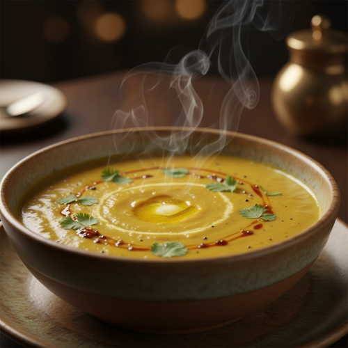 Traditional Indian soup made with lentils and spices. Warm aromatic and comforting.
