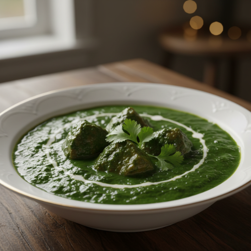 Lamb cooked with spinach. Balanced and nourishing (with rice)