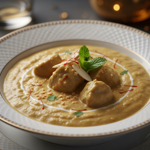 Lamb cooked in mild creamy nut sauce. Smooth and rich (with rice)
