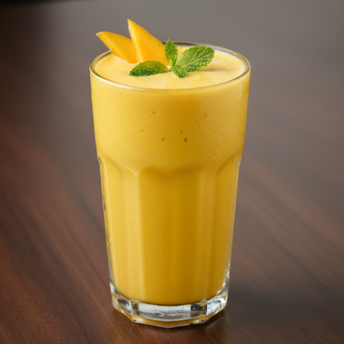 Yogurt drink blended with mango. Popular and fruity.