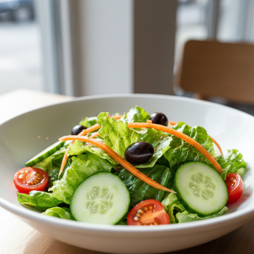 Fresh seasonal vegetables served crisp and refreshing. Light healthy and perfect as a starter.