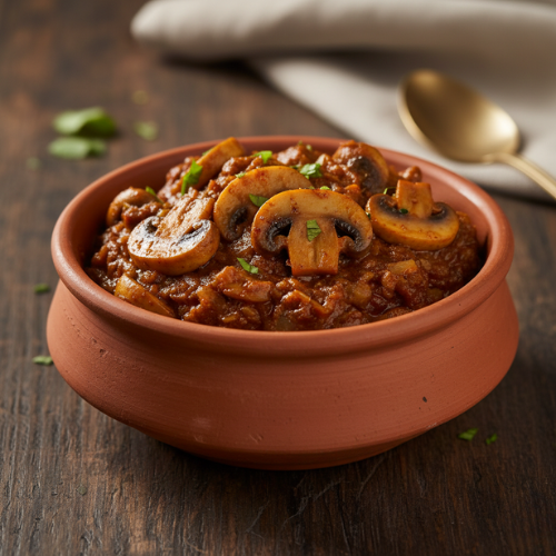 Fresh mushrooms cooked with spices. Earthy and rich (with rice)