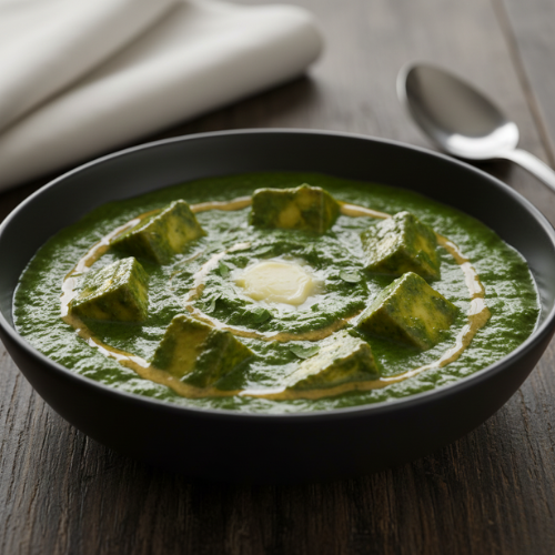 Paneer cooked with spinach. Healthy and flavorful (with rice)