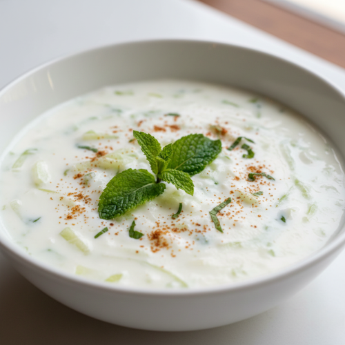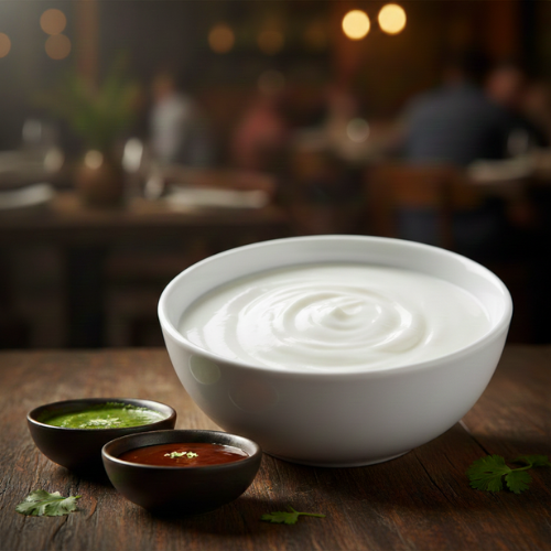 Fresh yogurt mixed with mild spices and herbs. Perfect for balancing spicy dishes.