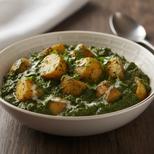 Spinach cooked with potatoes. Healthy and comforting (with rice)