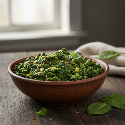 Spinach cooked with spices. Nutritious and simple (with rice)
