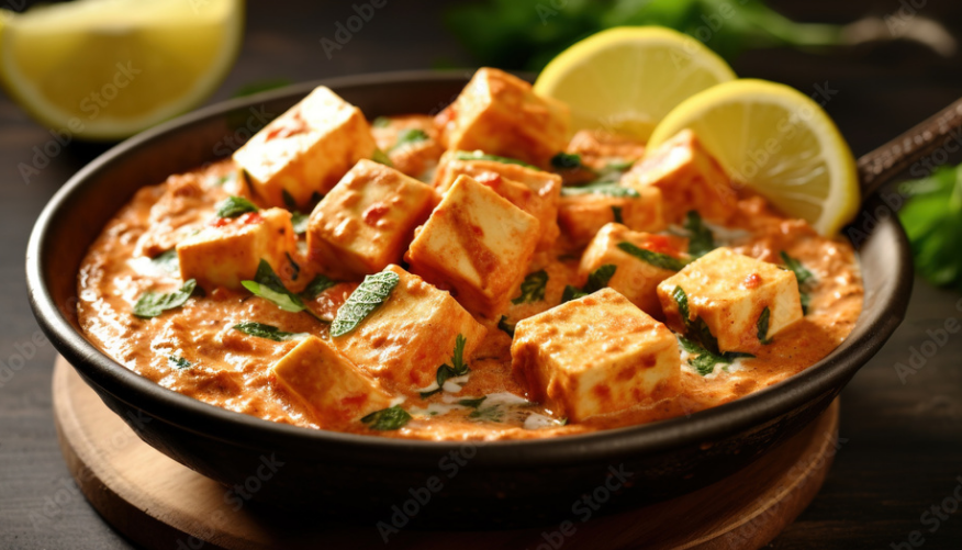Paneer in creamy tomato sauce. Hearty and filing (with rice)