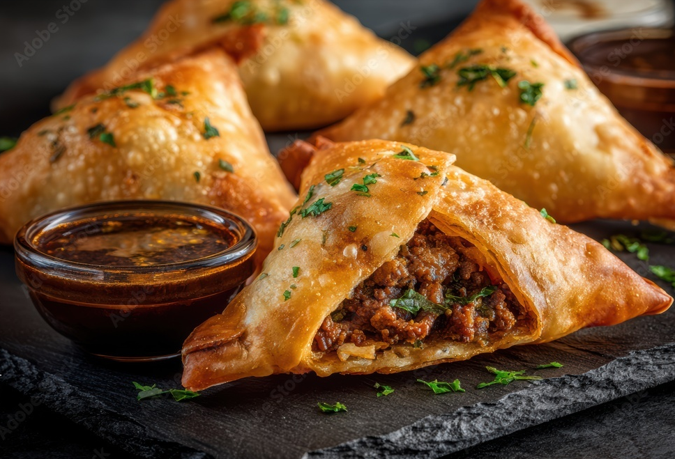 Crispy pastry filled with spiced vegetables. Classic Indian snack.