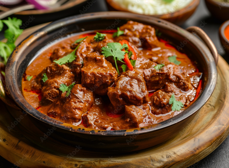 Spicy lamb curry with vinegar. Hot and intense (with rice)